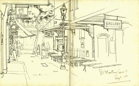 St Martin's Court Created 1955 Painting technique Pen and Indian ink Dimensions 25.6 x 41.2 Category Sketch Books Work ID ml-sk-016