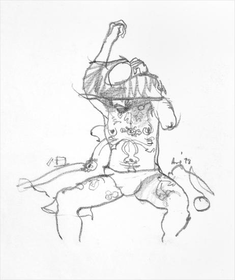Tattooed man - quick strip Created 1978 Painting technique Graphite Dimensions 14.9 x 12.1 Category Line Drawings Nude Work ID ml-nl-017