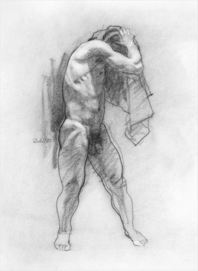 Top lit bather - side view Created 1980 Painting technique Conté Dimensions 23.9 x 14 + Category Line Drawings Nude Work ID ml-nl-026